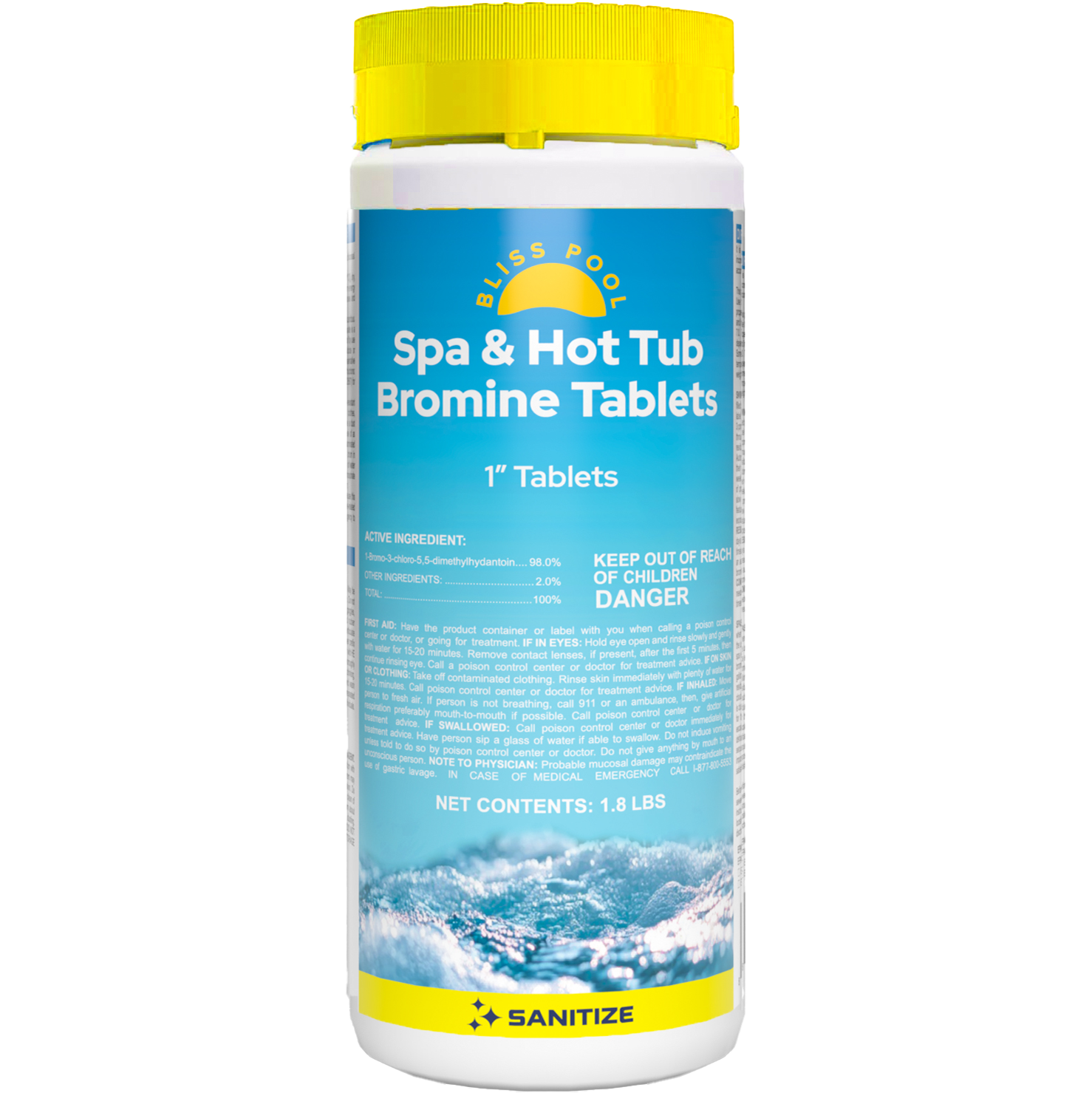 Bliss Spa & Hot Tub Bromine Tablets provide powerful, low odor sanitization that keeps water clear, soft and comfortable. These slow dissolving tablets maintain consistent bromine levels for effective control of bacteria and impurities, enhancing your relaxation experience. Safe for all spa types including swim spas, inflatable, wooden hot tubs and designed to fit all floaters. Test bromine levels twice a week with Bliss Spa Test Strips and get personalized product and dosage recommendations through the free Bliss Spa App. Convenient 1.8 lb container for simple, reliable spa care and lasting water clarity.